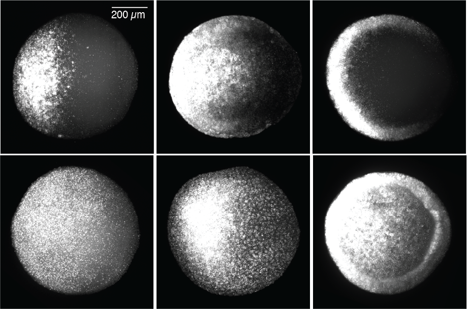 Developmental patterning relies on spatial signaling gradients. Classic models postulate that cells read out signaling-molecule concentration to make fate decisions, implying that specific spatial distributions are important for normal pattering. However, contemporary work suggests a more nuanced strategy, in which gradients may instead function by engaging a patterning network, requiring only spatial signaling asymmetry instead of a precise gradient shape. It is also possible that both mechanisms, or others, are used depending on the patterning context. To determine the “error tolerance” of signaling gradients during patterning, we will eliminate endogenous signaling and use our optogenetic toolkit to impose custom signaling distributions in zebrafish embryos (Figure 2). By assessing patterning consequences, such an approach will provide insights into the information content contained in developmental signaling gradients.
