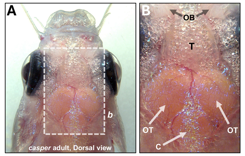 Figure 4. The zebrafish brain can be imaged through its translucent skull.